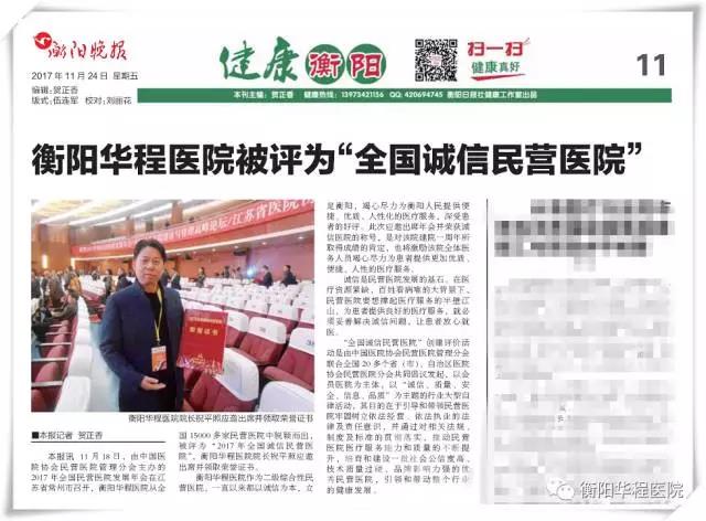 衡陽華程醫(yī)院被評為“2017年全國誠信民營醫(yī)院”