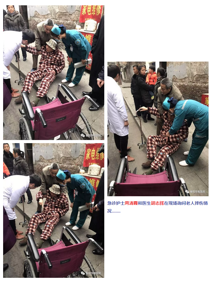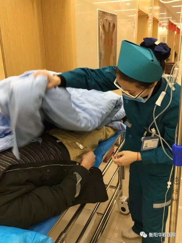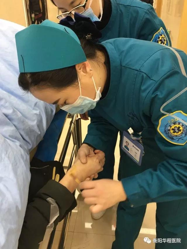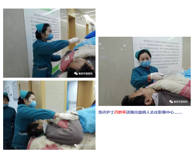 2018年1月3日一早,衡陽華程醫(yī)院急診科忙得不可開交,120救護(hù)車一早就接到一位腦出血病人,須馬上查出出血部位,護(hù)士符群英與工作人員一同將病人送入影像中心;護(hù)士周清霞接到電話醫(yī)院附近荷池路的十字路口一位60多歲的老爺爺因腦溢血摔在路邊,要馬上去往現(xiàn)場;呼吸科病人雷久福出院時仍有些氣促,在經(jīng)過急診科時被另外一名護(hù)士曾楚飛看到,她聯(lián)系后勤部門工作人員用推車將病人回家......