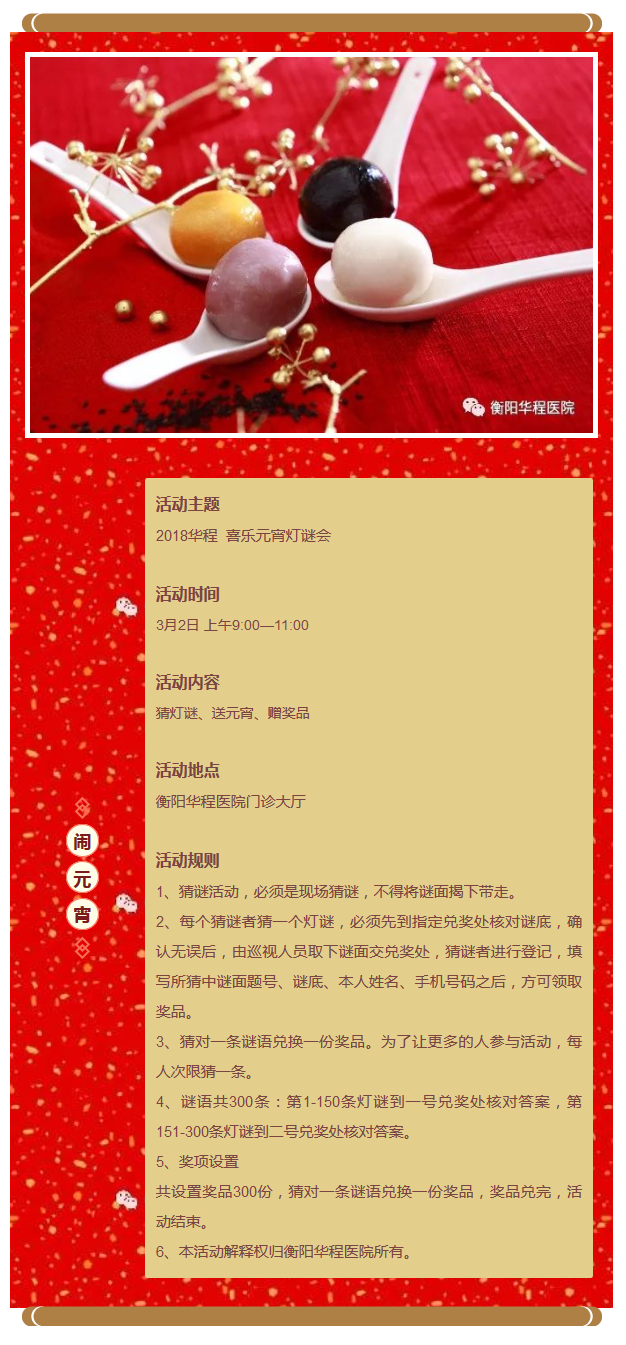 衡陽華程醫(yī)院承辦的“2018年華程 喜樂元宵燈謎會”活動,