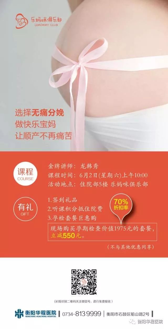 衡陽無痛分娩 選衡陽華程醫(yī)院 6月2日龍韓秀專家開講"做個快樂媽