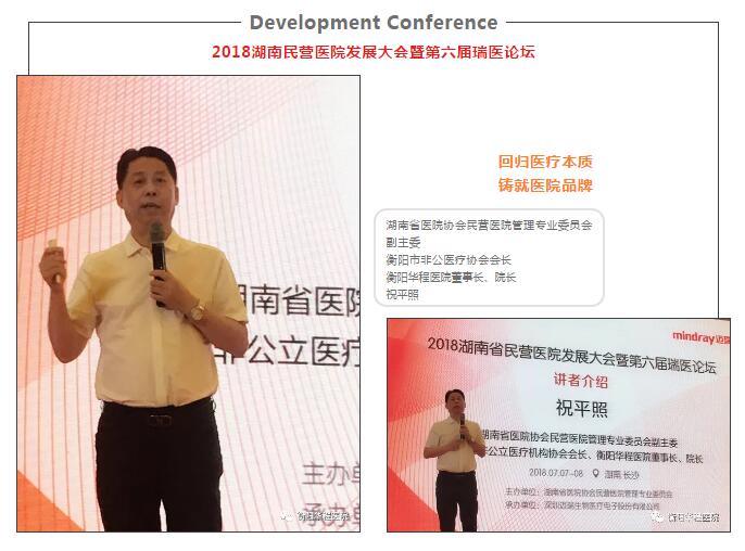 衡陽華程醫(yī)院祝平照院長(zhǎng)作為湖南省醫(yī)院協(xié)會(huì)民營(yíng)醫(yī)院管理專業(yè)委員會(huì)副主委、衡陽市非公醫(yī)療協(xié)會(huì)會(huì)長(zhǎng),在此次會(huì)議上作了《回歸醫(yī)療本質(zhì) 鑄就醫(yī)院品牌》的主題演講,演講從多個(gè)方面對(duì)華程醫(yī)院的品牌建設(shè)與管理進(jìn)行了分享,華程醫(yī)院的辦院理念、品牌文化受到了與會(huì)者的一致好評(píng),紛紛表示希望能與華程醫(yī)院進(jìn)行更深層次的交流與探討,充分發(fā)揮了大會(huì)為湖南各民營(yíng)醫(yī)院發(fā)展所搭建的交流平臺(tái),共同促進(jìn)民營(yíng)醫(yī)院發(fā)展的初衷。