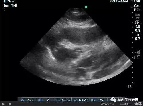 圖1 劍突下切面見大量心包積液伴右心室塌陷