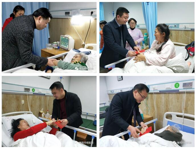 除夕,是中國傳統(tǒng)的與家人團(tuán)聚之日,然而有許多患者因病而無法回家,只能留在病房。為了體現(xiàn)“愛在華程 美德先行”的公益宗旨,在祝平照院長的帶領(lǐng)下每年所有慰問人員在除夕晚上八點(diǎn)三十分統(tǒng)一行動(dòng),為每一位住院患者送上一句溫暖的問候,捎去一份早日康復(fù)的健康祝福。