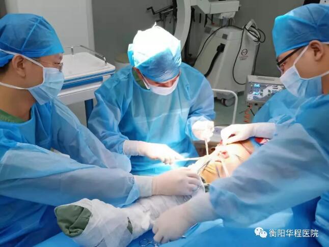 19:30,一切準(zhǔn)備就緒,鄧師傅被推進了手術(shù)室,在麻醉團隊的配合下,衡陽華程醫(yī)院急診外科手足顯微(團隊)開始為患者實施右下肢清創(chuàng)縫合+神經(jīng)、血管、肌腱吻合手術(shù)。