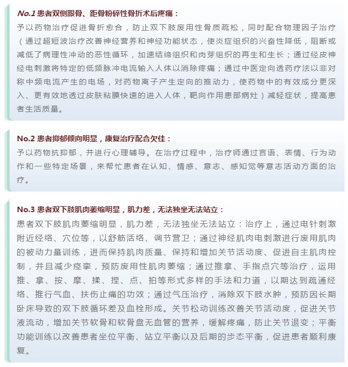 鑒于患者對治療的態(tài)度非常消極,不愿意配合康復治療等特殊情況,康復中心隨即成立康復治療小組,通過全方位評估患者病情后,制定個性化康復治療方案: