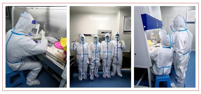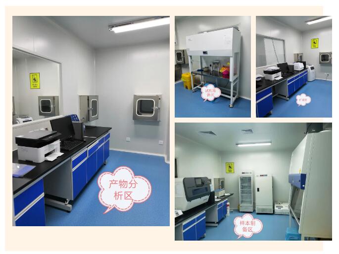 實驗室嚴(yán)格按照醫(yī)學(xué)生物安全實驗室建筑技術(shù)標(biāo)準(zhǔn)建設(shè),采用標(biāo)準(zhǔn)化、合理分區(qū)負(fù)壓氣流設(shè)計,分為四區(qū)三通道。四區(qū)分別為試劑準(zhǔn)備區(qū)、標(biāo)本處理區(qū)、擴(kuò)增區(qū)、產(chǎn)物分析區(qū);三通道分別為標(biāo)本送檢通道、工作人員通道、污物通道;做到“各區(qū)獨立、注意風(fēng)向、杜絕污染、方便工作”。PCR配備有:全自動核酸提取儀BK-HS96、實時熒光定量PCR分析儀Lepgen-96、醫(yī)用冷藏箱、高速臺式離心機(jī)、恒溫金屬浴、旋渦混勻器、Mini離心機(jī)、生物安全柜、潔凈工作臺、高壓滅菌鍋、紫外線消毒車、紫外消毒機(jī)等??蓪崿F(xiàn)單日單采檢測量1200人/次。